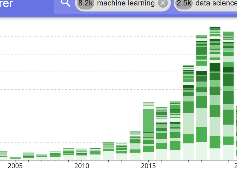 GrantExplorer is a free, open-source tool for examining the phrases funded by U.S. federal agencies. This includes more than a half-million grants from the National Science Foundation (NSF), National Institutes of Health (NIH), and Department of Defense (DoD). The tool uses React, D3, and FastAPI for interactive visualizations, and Elasticsearch and Gensim language models to intelligently assist with keyword queries. The source code is available on GitHub.